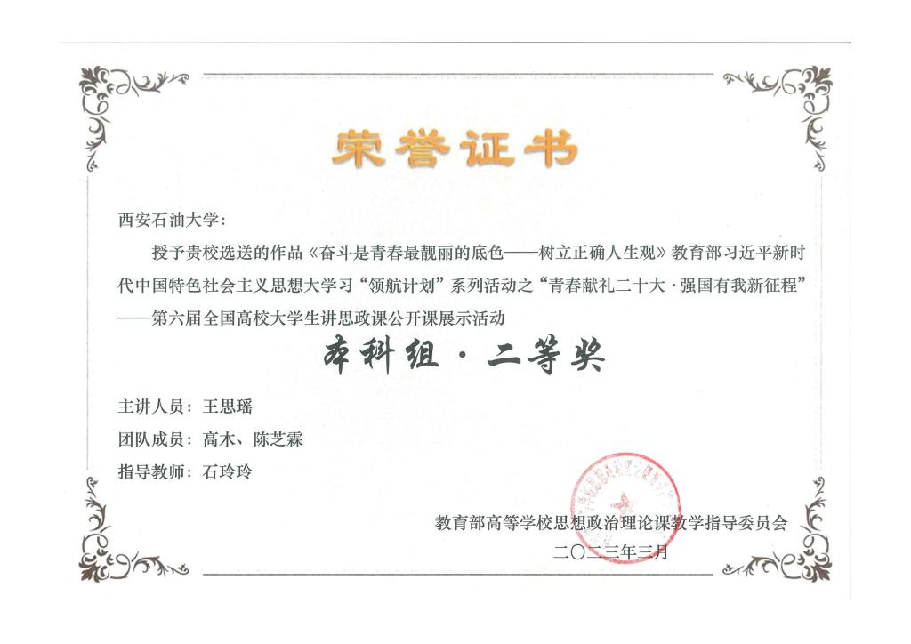 2022年第六届全国高校老员工讲思政课公开课展示活动本科组二等奖(王思瑶)