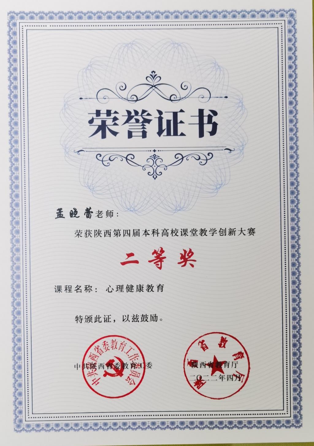 2022年陕西省第四届高校课堂教学创新大赛二等奖(孟晓蕾)