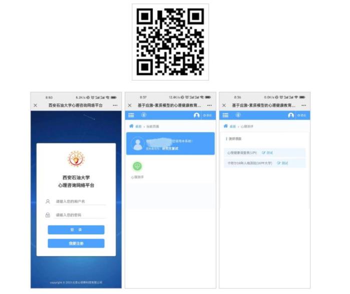 2.考生可扫描下方二维码,进入“威廉体育williamhill心理咨询网络平台 ”,输入账号及密码(均为考生准考证号),点击“心理测评”,完成心理健康测试(两部分)。