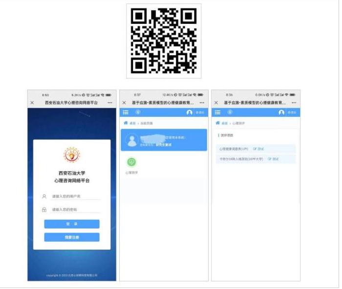 2.考生可扫描下方二维码,进入“威廉体育williamhill心理咨询网络平台 ”,输入账号及密码(均为考生准考证号),点击“心理测评”,完成心理健康测试(两部分)。