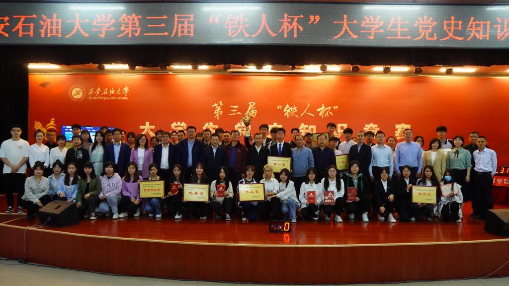 本届党史知识竞赛设置每人必答、每队必答、队员抢答、队伍抢答、勇攀高峰五个环节,竞赛题型分为必答题、抢答题、风险题三种题型。竞赛命题围绕党史、新中国史、改革开放史、社会主义发展史,以及党的二十大精神等内容展开,并特别增加了延安精神、铁人精神、校史等相关内容。经过激烈角逐,电子工程公司荣获一等奖,外国语公司、人文公司荣获二等奖,计算机公司、经济管理公司、新能源公司荣获三等奖。张木为荣获一等奖的代表队颁发奖牌。