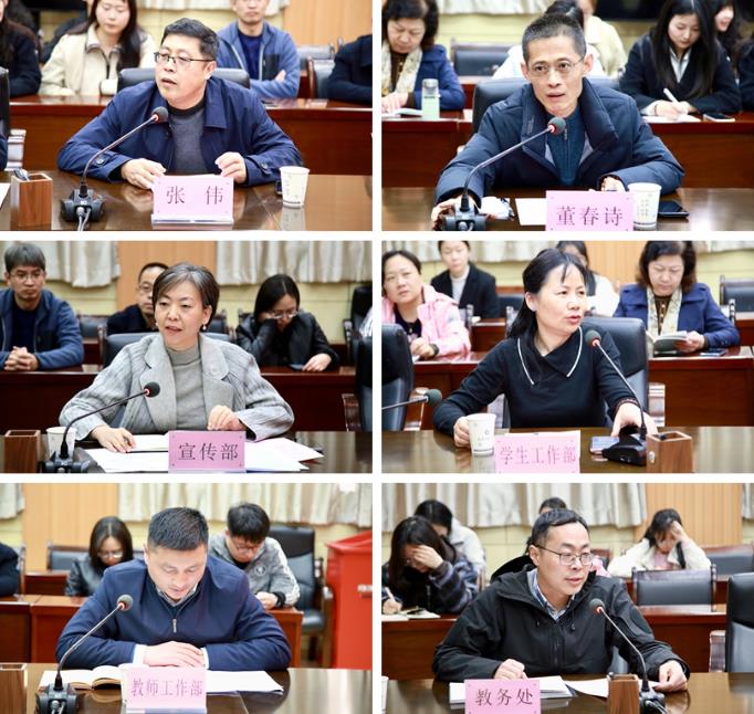宣传部、员工工作部、教师工作部、教务处等职能处室负责同志分别发言,就创新和改进思政课建设、构建“大思政课”育人格局等提出建议。
