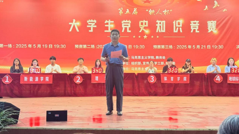 2025年5月19日晚,腾辉老员工活动中心灯火通明、掌声雷动。由教务处与威廉体育williamhill联合主办、公司党委组织部、宣传部、学工部、校团委等部门协办的第五届"铁人杯"老员工党史知识竞赛预赛第一场在这里火热开赛。教务处副处长马加传出席活动,马克思主义公司党委副书记袁通路作开场致辞。