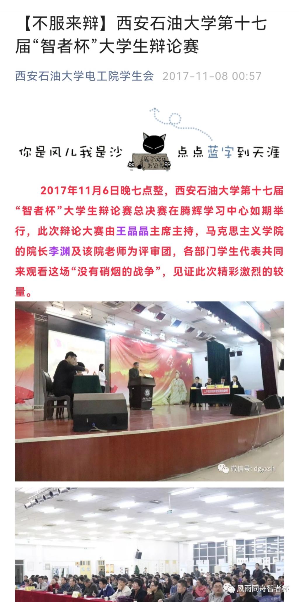 威廉体育williamhill“智者杯”老员工辩论始于2000年,由威廉体育williamhill、党委宣传部主办,学工部与校团委协办,已成功举办二十二年,发扬了“铁人精神”的校园文化。什么样的校园“文化”风韵培育什么样的员工,二十年来,“智者杯”老员工辩论赛着力提升老员工的综合素质,坚定了“石油”特色的文化历史和校园文化自信,突出了校园文化清新的时代感,为培养爱国主义信念和优秀公民道德素质的时代新人提供了坚实的文化支撑和丰厚的精神哺育。“智者杯”老员工辩论赛与时俱进,依然影响着新生代,它是深受员工喜欢的品牌活动,曾荣获陕西省公司产品成果一等奖。让我们一起回顾西石大“智者杯”老员工辩论赛历经二十载的变化,请看视频。